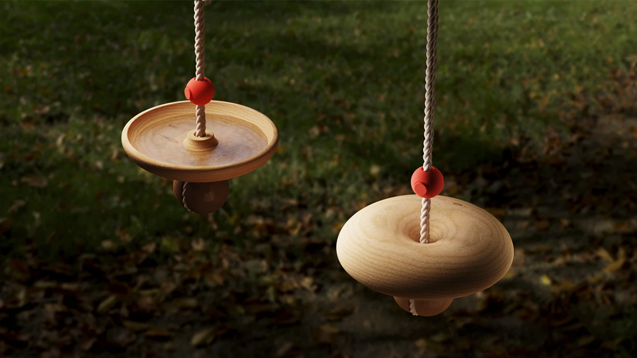 Inspired by the Korean tradition of Kkachibap, where people leave unharvested persimmons for the hungry birds, the Birddy swing shows kids how their small act of play can turn into a gesture of kindness toward wildlife. This mindful concept earned the designers an Excellence Prize at the Kengo Kuma & Higashikawa KAGU Design Competition, 2024.