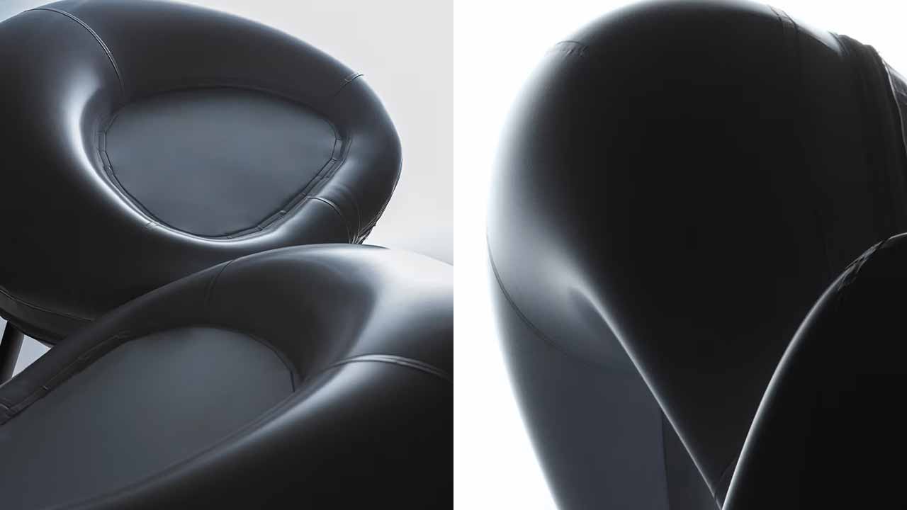 When grouped, the chairs create a playful, whimsical interior, giving the room a personality. The furniture has inflatable softness paired with a brushed steel frame. The durability and lightness of an inflatable toy are paired with a seat that not only serves as furniture but also adds a playful, exuberant touch to the interiors. The chAIR is made to order via balcony’s website.