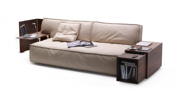 You can personalize the MyWorld system according to your preferences. For the seating you can choose from a two or three seater sofa, a chaise lounge or a large cushioned seat with two large drawers. The multifarious creator has upholstered the seating options with feather padding for total comfort and you can also combine additional pads for more comfort. The upholsters are also available in 100% natural leather and fabric. ‘My world’ lounge system by Philippe Starck will be launched by Cassina at the Salone del Mobile in Rho Fiera from April 9th to the 14th, 2013.