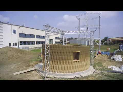 The external structure is 3D printed using the Crane WASP 3D printer which deposits the cob mixture in such a way that it provides structural strength and geometric variation. The team at WASP took 10 days to 3D-print the 30-square-meter, 40 cm thick wall with an approximate cost of € 900.