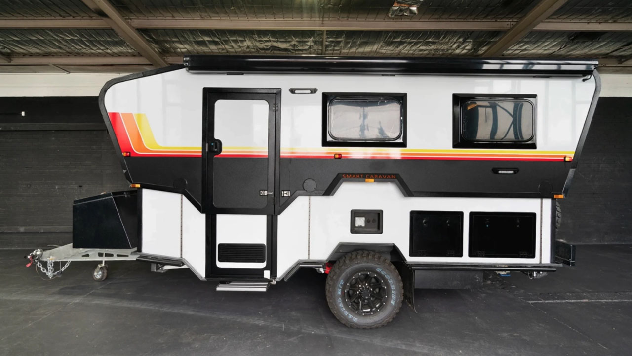 Powered by manual hydraulic cranks, it offered superior aerodynamics, fuel efficiency, and garage-friendly storage compared to traditional caravans. After the company folded, the design lay dormant until a small team of RV industry veterans revived the brand earlier this year, switching from a hydraulic crank lifting mechanism to electric actuators.