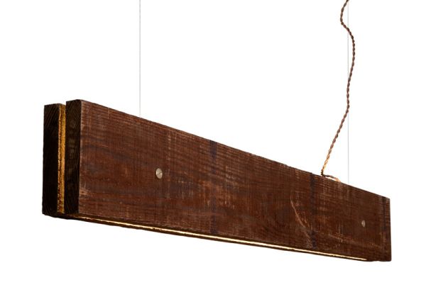 This lighting object ensures sustainability and eco-friendliness in its entire character. ‘Plank’ is available in two different wood types – one of them is made in rough cut light colored poplar wood planks, while the other is created by making use of brown surfaced Kebony SYP (Southern yellow pine) wood. The wooden planks are left unfinished to reveal the natural wood marks that are formed during handling and production.