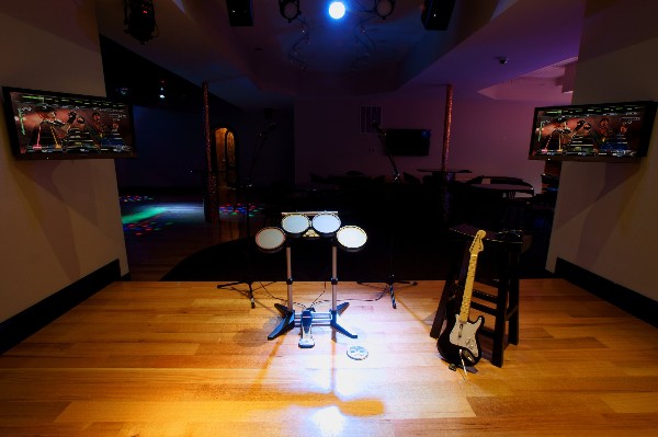 Having a DJ booth without lighting and visual effects doesn’t sound to be fun – so to give it a more professional touch the homeowner fitted the booth with commercially used nightclub lighting like disco balls, strobes, colorful LED lights, and many more other devices, all controlled by the DJ booth. To add more controls to the DJ booth, it has been given the enhanced functionality to open and close two exterior and garage doors, and display the output of surveillance cameras on the TV screen.
