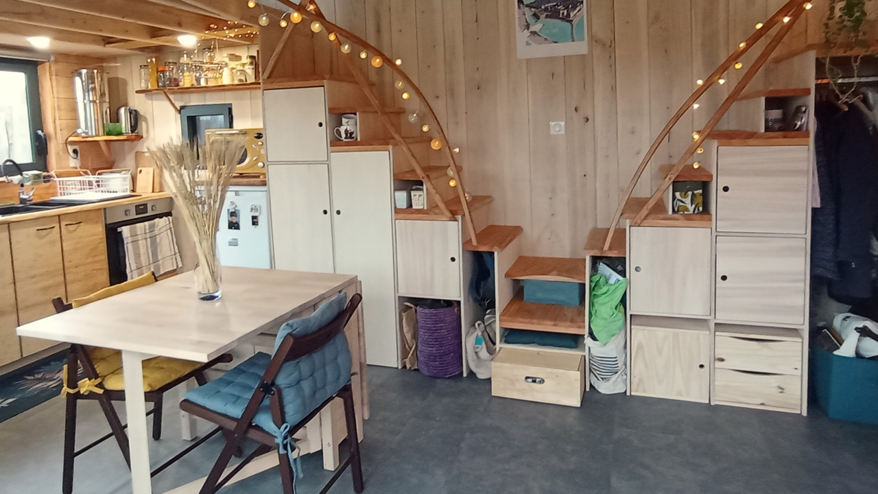 The Tiny XXL house is built on a robust agricultural chassis, measuring 26 feet long and 11.5 feet wide. The tiny house’s width is huge compared to other French tiny houses, which are quite compact. With such incredible spaciousness, the house creates a unique blend between a compact tiny house and a regular house.