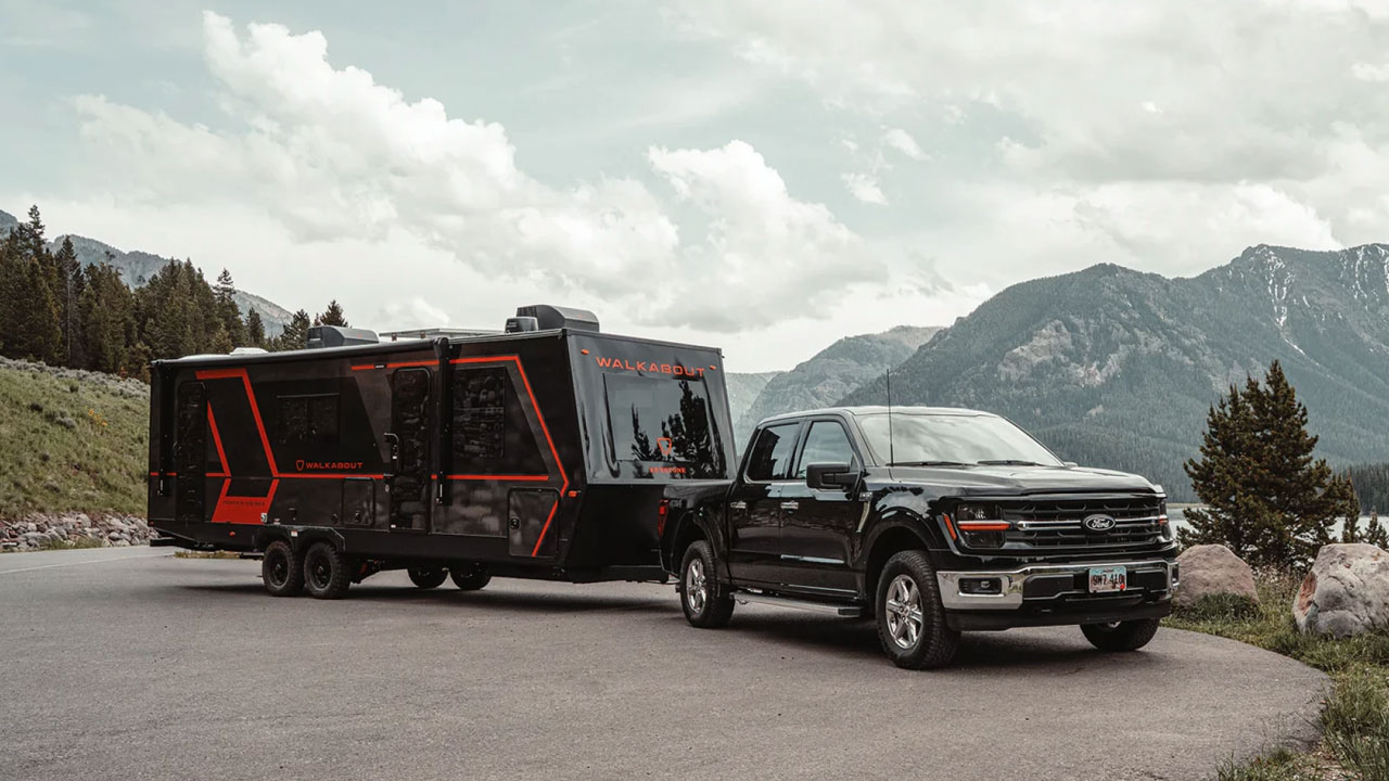 Beyond the Walkabout 26 Max’s off-road capability, the RV features an automotive-grade aluminum exterior strengthened with eleven powder-coated aluminum corner rails, making it more than ready to handle rough roads. It also comes with a spacious pass-through front storage compartment, equipped with a mounting wall for tools, electrical components, a water sprayer system, fishing rod holders, and other accessories.